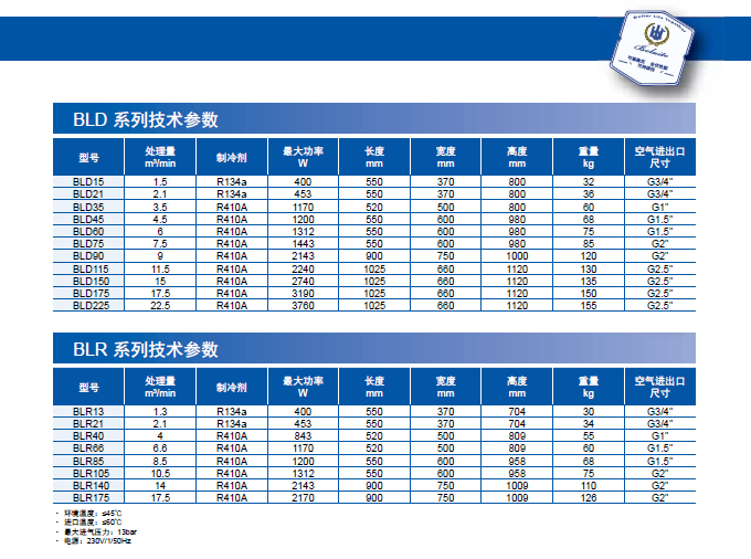 BLR系列冷干機壓力露點為3-10℃,出口相對溫度可至20。