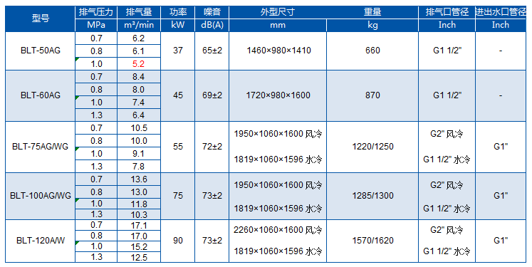 博萊特BLT-7A~120A/W螺桿壓縮機是為國內工況和運行環(huán)境而設計制造的,具有性能出眾、安裝容易、操控靈活和生產(chǎn)力高的特點;能夠滿足用戶多方面的需求,并為用戶的生產(chǎn)過程保駕護航;在保障高生產(chǎn)效率和生產(chǎn)力的同時,降低用戶成本。