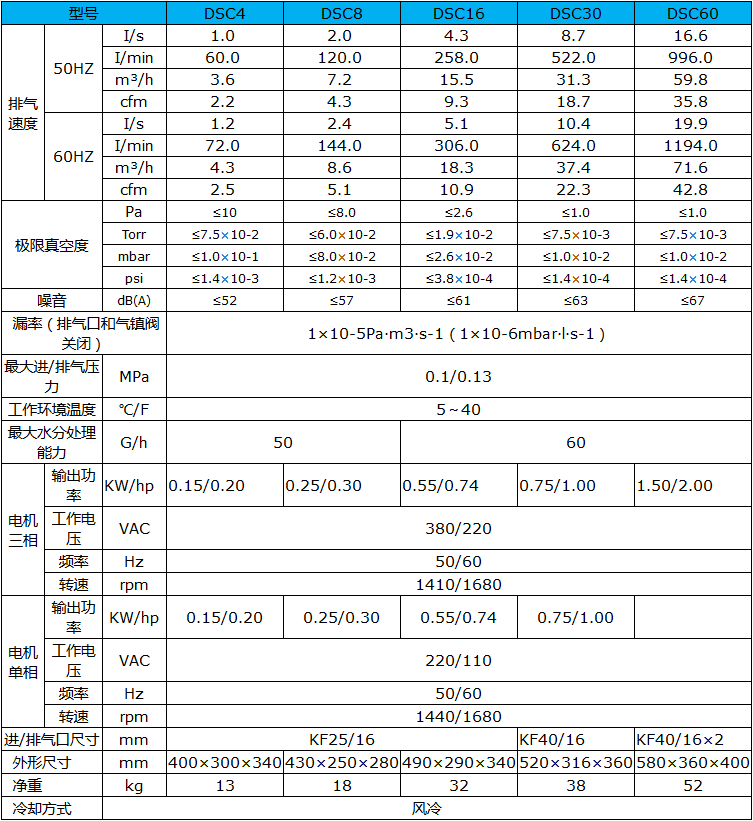 DSC系列無(wú)油渦旋真空泵由泵頭、電機(jī)、機(jī)座等構(gòu)成。泵頭含有動(dòng)、定渦旋盤(pán)、曲軸密封件、風(fēng)扇和泵殼等。渦旋盤(pán)由圓形平面和其上伸出的一條或幾條漸開(kāi)線渦旋形盤(pán)避組成,定渦旋盤(pán)與動(dòng)渦旋盤(pán)組成渦旋盤(pán)付構(gòu)成無(wú)油渦旋真空泵的基本抽氣結(jié)構(gòu)。工作過(guò)程中,動(dòng)、定渦旋盤(pán)互不接觸,依靠相對(duì)運(yùn)動(dòng)形成容積不斷縮小的新月形封閉壓縮腔,通過(guò)吸氣、壓縮、排氣的循環(huán),使氣體從抽氣口吸入、排氣口排出,實(shí)現(xiàn)對(duì)被抽腔體抽真空。